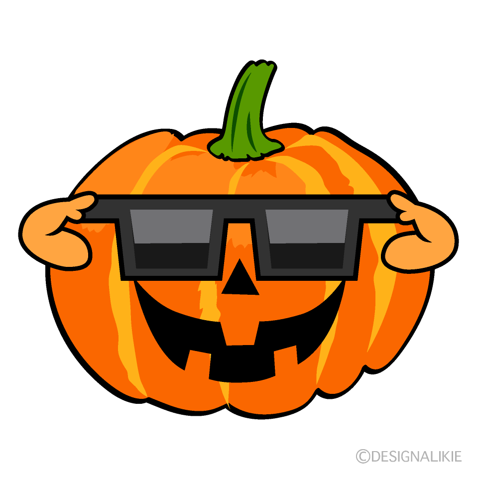 かわいいサングラスの夜のハロウィンカボチャのイラスト素材無料ダウンロード IllustCute。