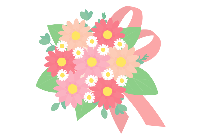 フリー素材カラフルで綺麗な花束のイラスト。誕生日や結婚式などのお祝いごとに。