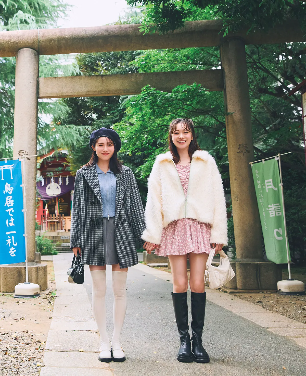 2025年の初詣コーデはきれいめ白ワントーンで カジュアル派 出口夏希&スイート派 紺野彩夏の冬休みイベントコーデコーディネートnon-no web。