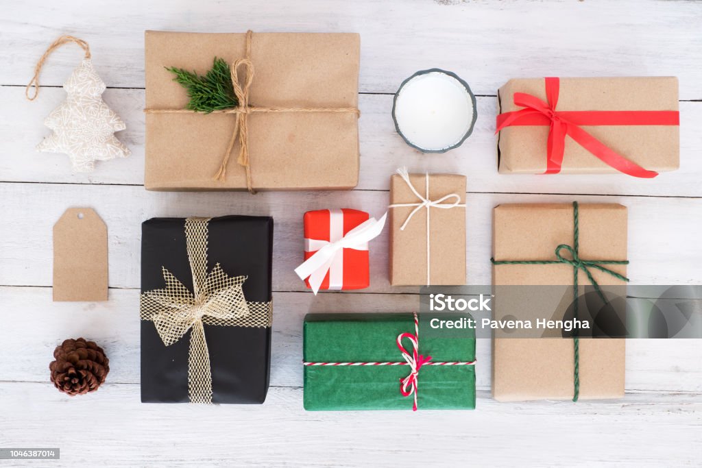 クリスマスの手作りプレゼント ギフト ボックスとホワイトの木製ボードに素朴な装飾 - 贈り物のストックフォトや画像を多数ご用意 - 贈り物, お祝い,クリエイティブな職業 - iStock。