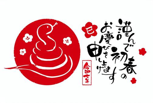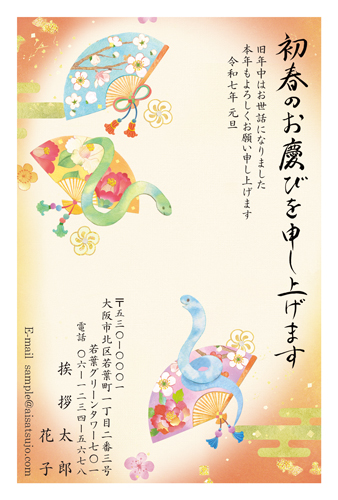 初春のお慶びを申し上げます No:102569│年賀状2025 令和7年・巳年・へび 無料素材。