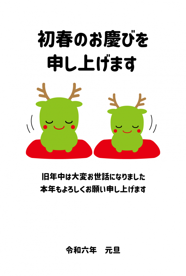 20_2024年年賀状_辰年・かわいい龍・初春のお慶びを申し上げます・鏡餅無料イラスト素材素材ラボ。