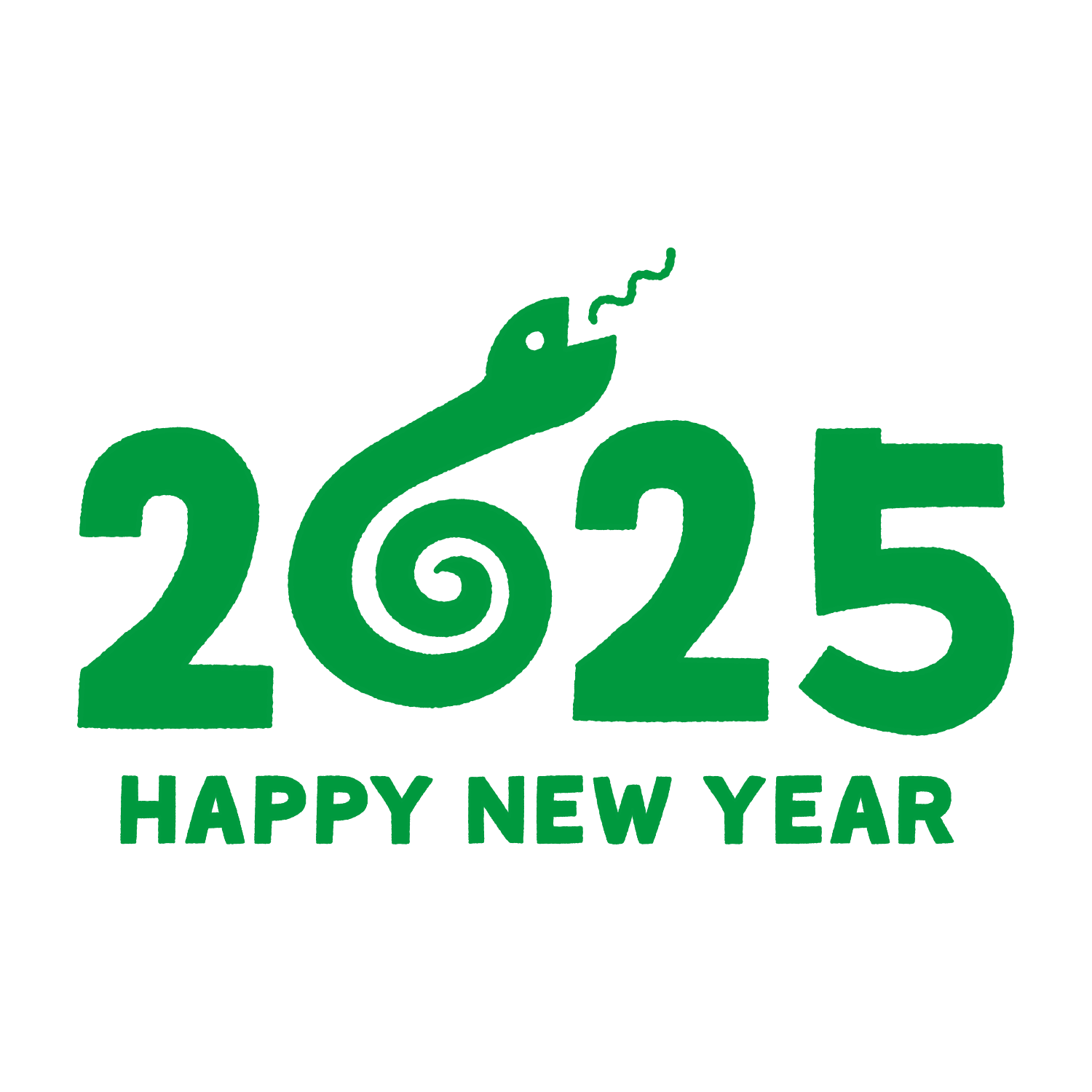 2025☆ロゴ☆happy New year☆年賀状素材☆巳年:イラスト無料。