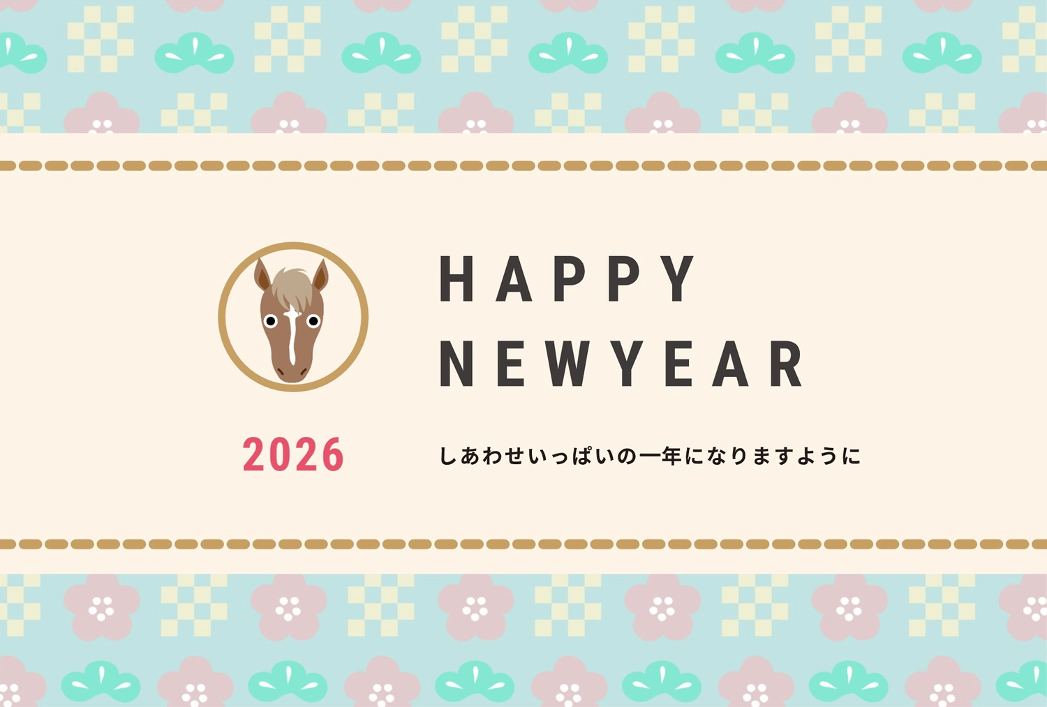 蛇の蛇によるHappy New Yearアフロモール2026年午年 年賀状デザインのダウンロード販売アフロモール。