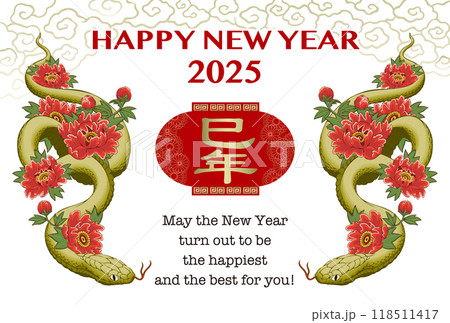 2025年をイメージした巳とhappy new yearのイラストのイラスト素材119282184- PIXTA。