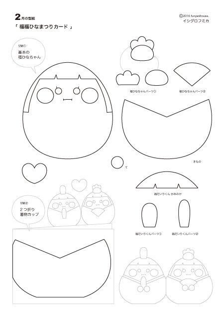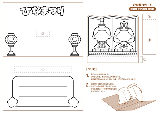 ひな祭りのペーパークラフトや飛び出すカードの無料テンプレートインスピ。