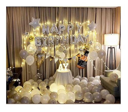 OMEW 誕生日バルーン 飾り付け 風船 LEDスターライト付き Happy Birthday パーティー 飾り 誕生日 ギフト プレゼント 装飾パーティーグッズ 雰囲気最高 灰と白の評判・口コミocruyo オクルヨ。