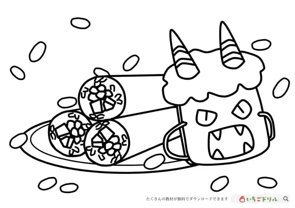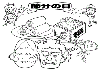 無料の2月のぬりえ 節分 豆まき 恵方巻ぬりえパーク。