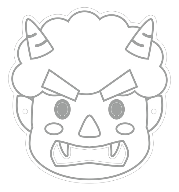 鬼のお面 節分のぬりえラインですPremiumベクトル素材。