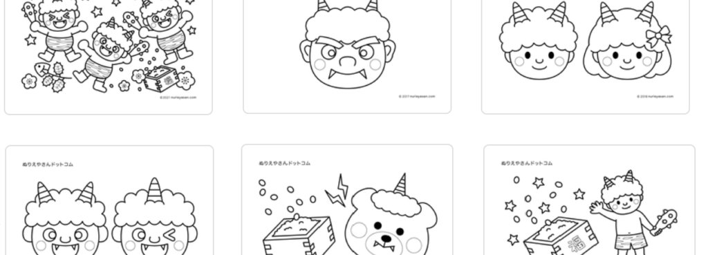 無料の節分・鬼は外の豆まきのぬりえぬりえパーク。