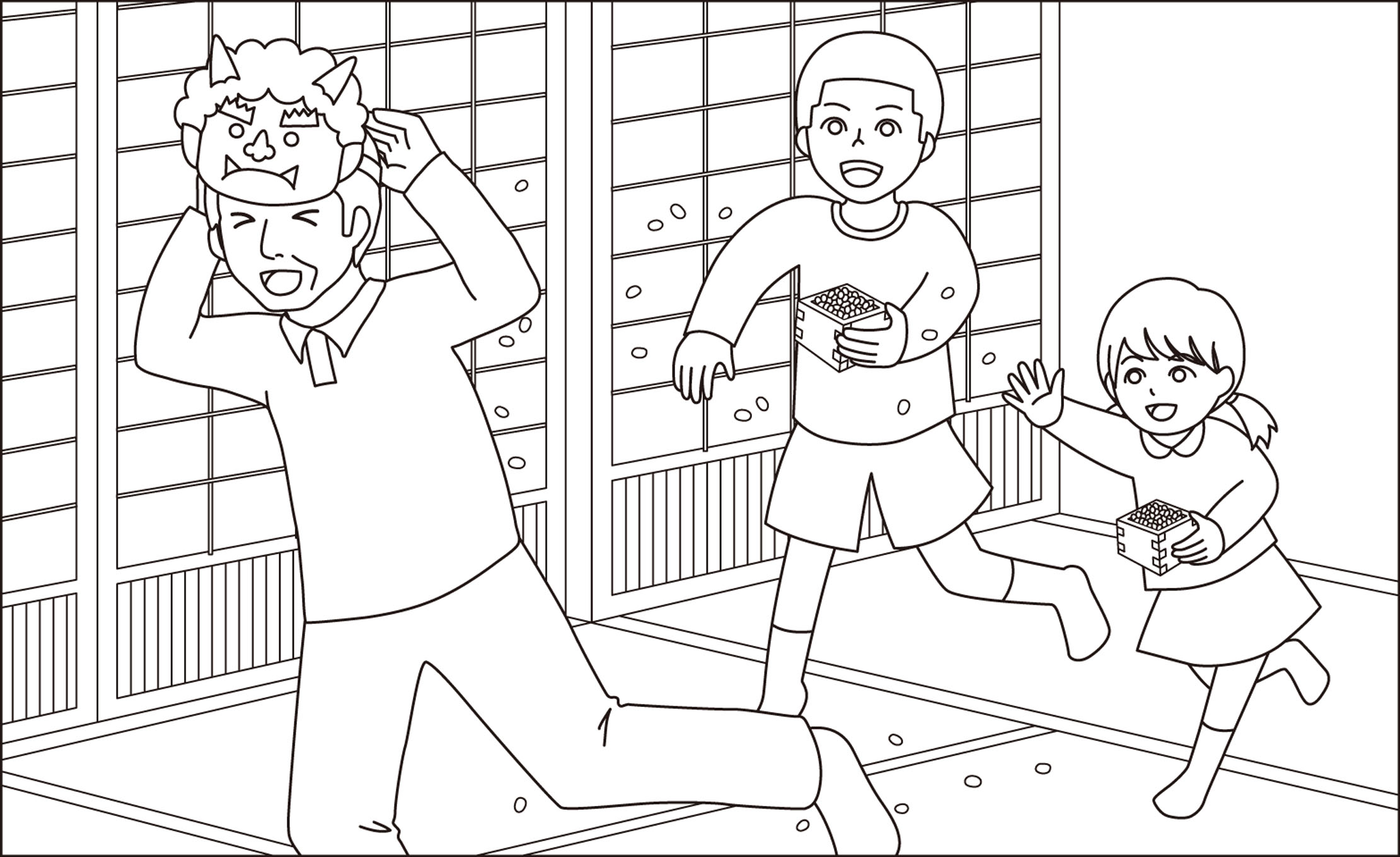 豆まき塗り絵4イラスト - No: 332081無料イラスト・フリー素材なら「イラストAC」。
