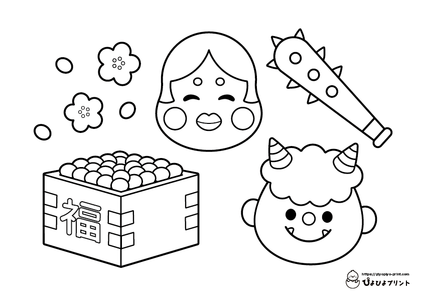 無料の塗り絵「豆まき」の検索結果 - ぬりえやさんドットコム。