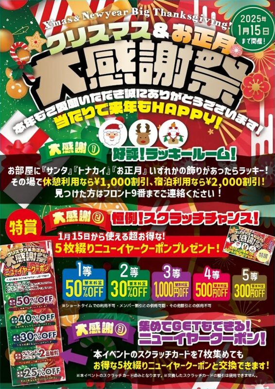 2024年クリスマス&年末キャンペーンのお知らせナポ・インターナショナル・グループ全国各地でレジャーホテルをプロデュース。