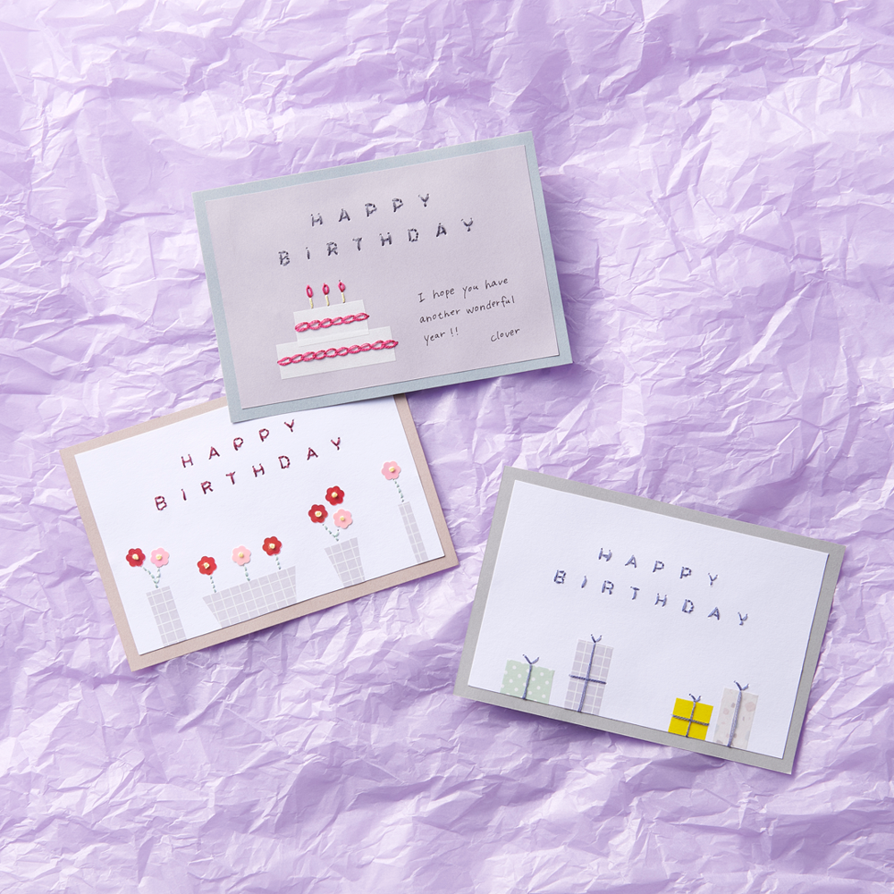 紙刺しゅうとマスキングテープで作る バースデーカード手作りレシピクロバー株式会社。
