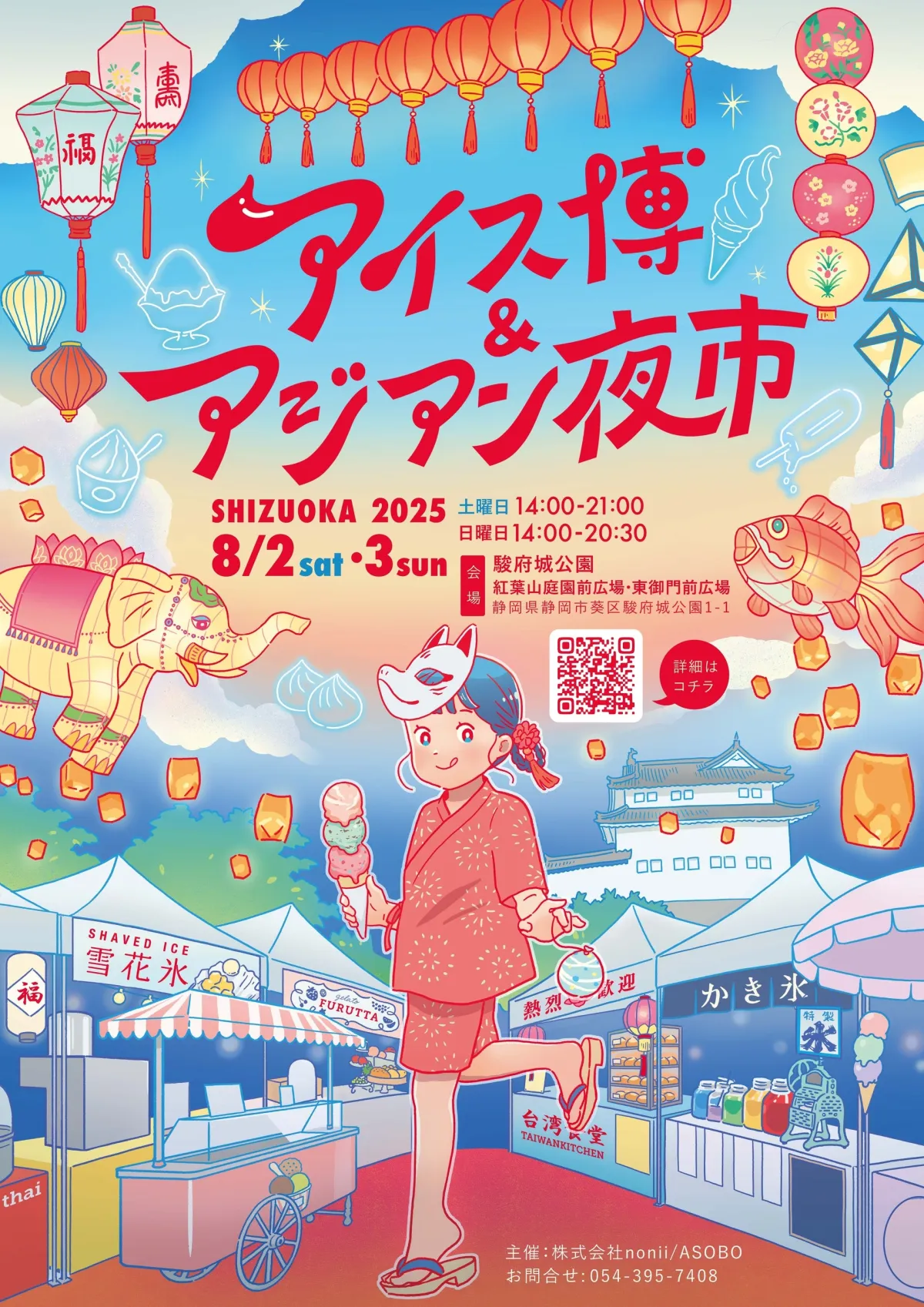 2025年8月開催、静岡最大級の夏フェス「アイス博&アジアン夜市 SHIZUOKA 2025」出店者募集ベストカレンダ。
