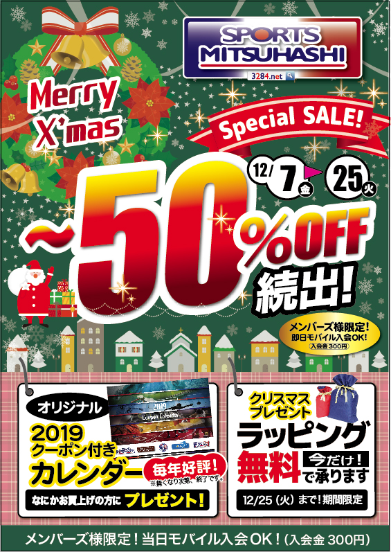 クリスマス・スペシャルSALE♪ 50%OFF続出!! ラッピング無料!!スポーツミツハシ京都・奈良でシェアNo1のスポーツ用品店。