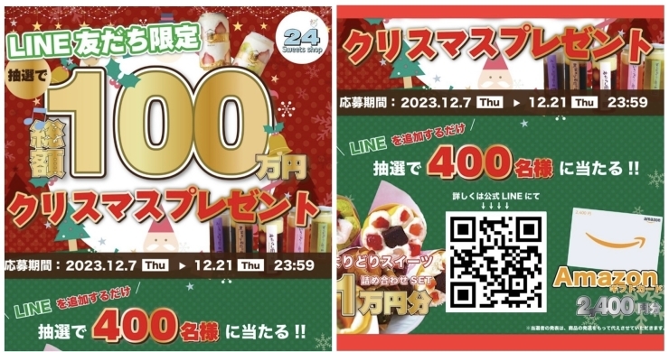 クリスマスプレゼントキャンペーン🎵スイーツ詰め合わせやAmazonギフトが当たる!総額100万円プレゼント企画✨ 24 越前武生店スイーツ専門無人販売所24 スイーツショップ 越前武生店のニュースまいぷれ 丹南・越前・鯖江。