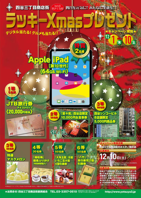 2022年 四谷三丁目商店街 ラッキークリスマスプレゼントのお知らせ - 四谷三丁目商店街。