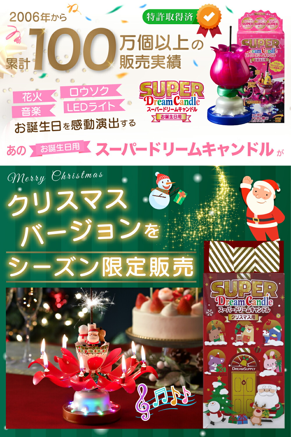 スーパー ドリームキャンドル クリスマス ギフト セット クリスマスプレゼント テディベア くま ぬいぐるみ マスコット サンタ フラワー ボックスくるくる 回る メロディ 音楽 手のひらサイズ ミニサイズ 女性 子供 女の子 20代 30代 花火 ロウソク 光る パーティー。