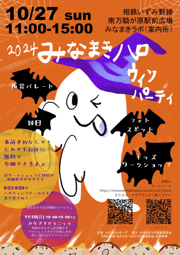 みなまきハロウィンパーティー2024:仮装パレードやキッズワークショップ、縁日など盛りだくさん 2024年10月27日 日相鉄いずみ野線 南万騎が原駅前・予約不要横浜・湘南で子供と遊ぶ - あそびい横浜・湘南。
