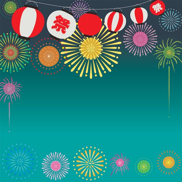 日本の夏祭りの背景イラスト。Premiumベクトル素材。