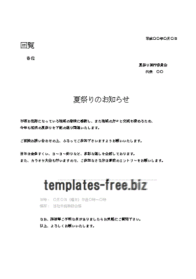 夏祭りのお知らせ2種の例文 フォーマットの無料ダウンロード。