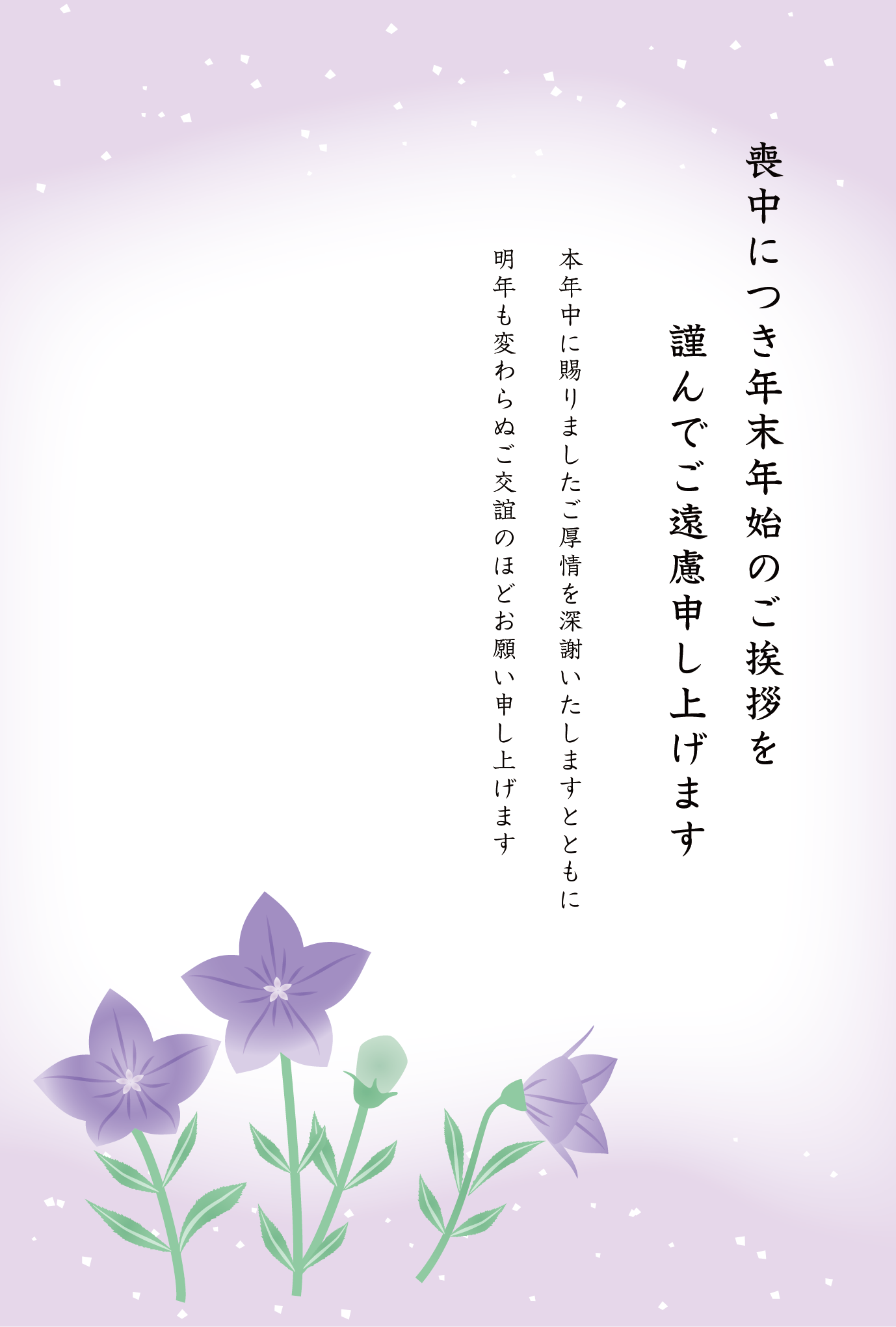 喪中はがき 年賀欠礼 無料テンプレート 季節のイラスト花工房 桔梗。