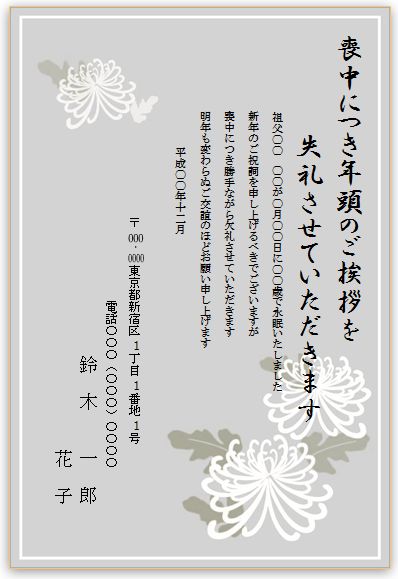 喪中はがきの無料デザインと文例Wordテンプレートのダウンロード - 登録不要のフリーテンプレート。