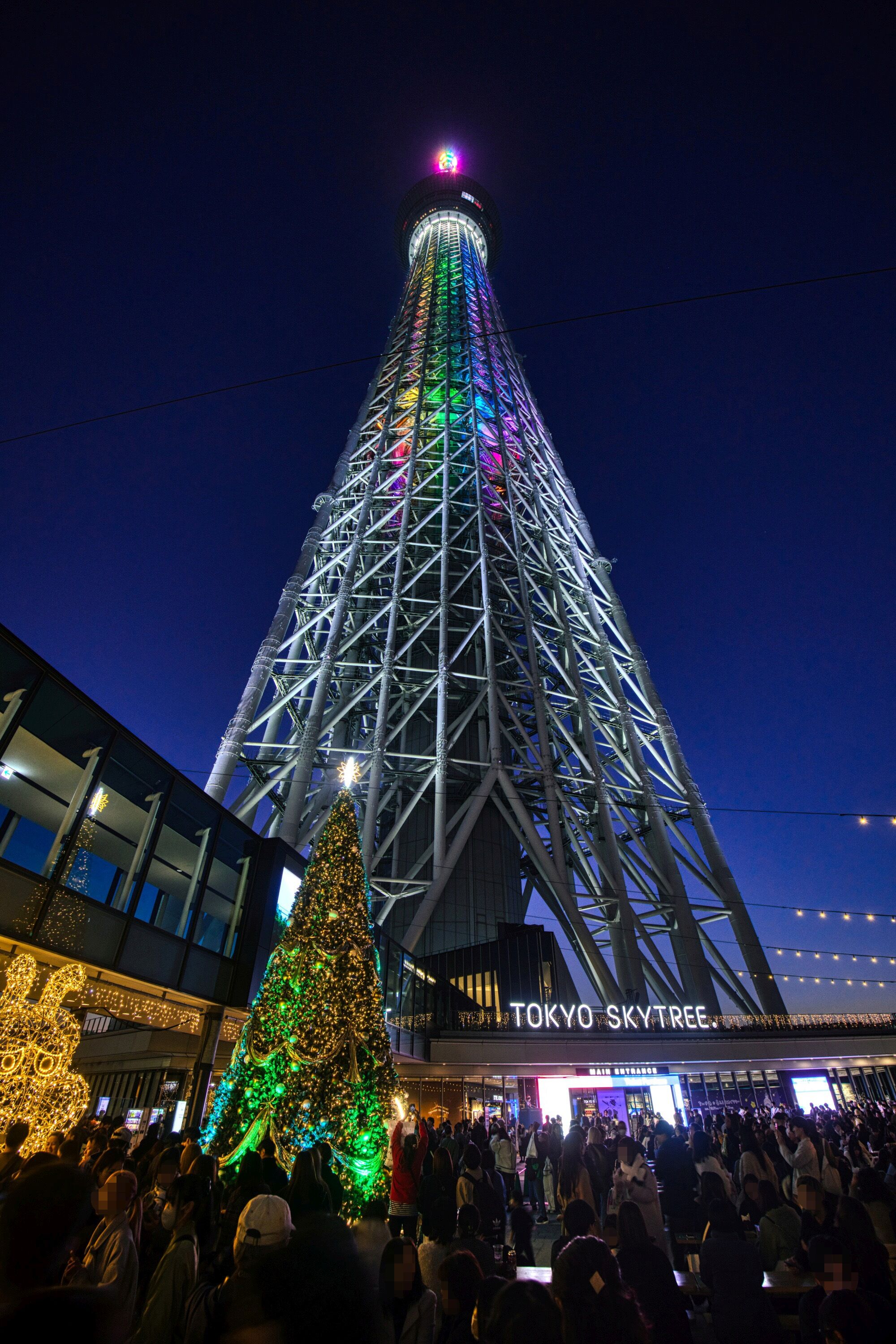 東京スカイツリーのクリスマスイルミネーション 2023年12月10日: 東京スカイツリー定点観測所。