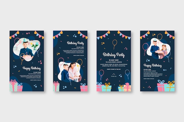 誕生日のインスタグラムストーリーストーリー無料ベクトル素材。