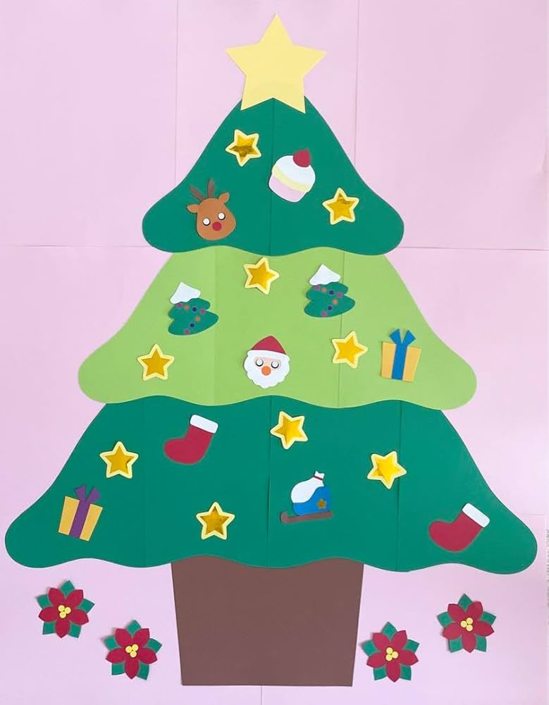 簡単!クリスマスツリーの壁面飾りの作り方!折り紙を材料に、12月のイベントに向けて作ってみてはいかがでしょう? つくるモン。