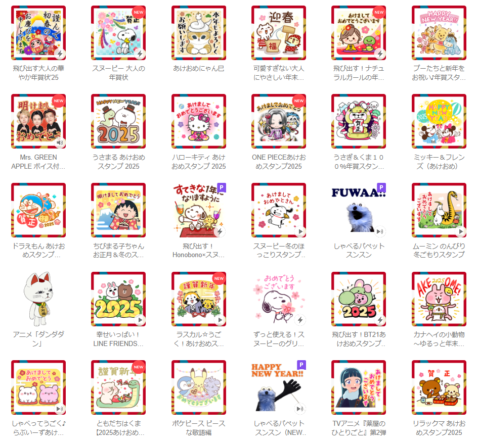 2025 LINEあけおめ正月スタンプ 無料・有料おすすめまとめアプリオ。