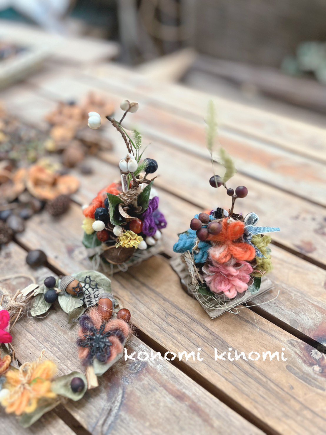 スキートムテの作り方 毛糸とフェルトで作るクリスマスオーナメントHow to make ski gnome Christmas ornament。
