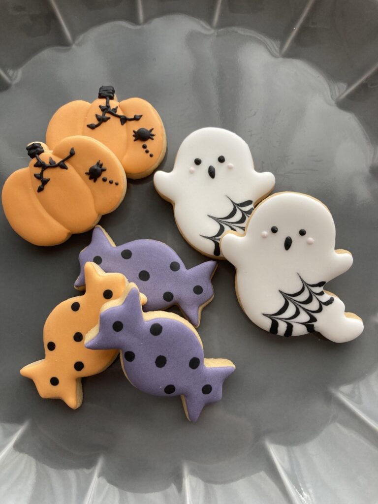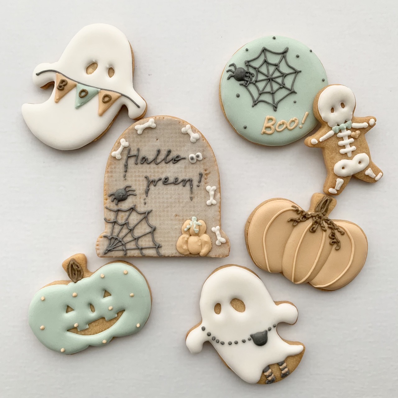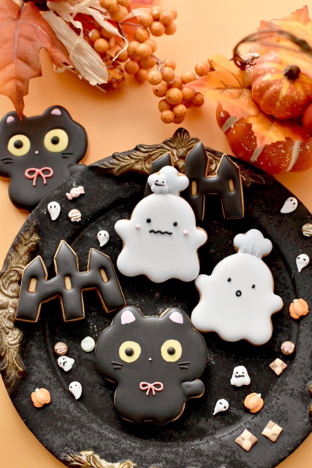 大好評!黒猫とオバケのハロウィンクッキーアイシングクッキーを楽しくマスター!大阪北浜とオンラインのアイシングクッキー教室ソライロシュガ。