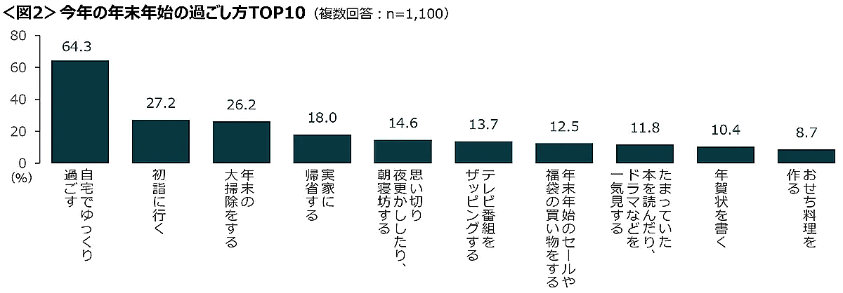 年末年始の過ごし方、「自宅でゆっくり過ごす」が64.3%で断トツでトップ。セールや福袋の買い物は12.5%ネットショップ担当者フォーラム。