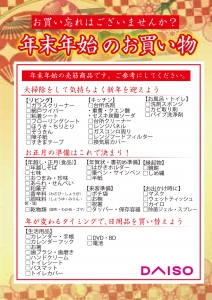 新年準備にご利用ください<年末年始お買い物リスト>お知らせDAISO ダイソー 公式企業サイト。