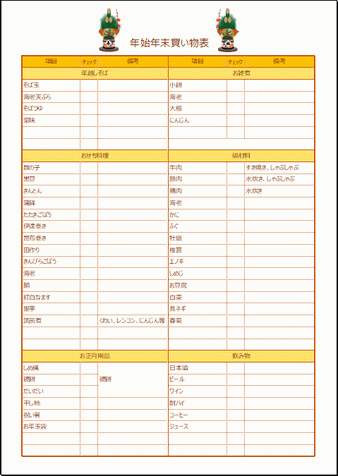 年始・年末買い物リスト:おせち料理・お正月用品・鍋具材・お雑煮・年越し蕎麦・酒など - 無料テンプレートのダウンロード。
