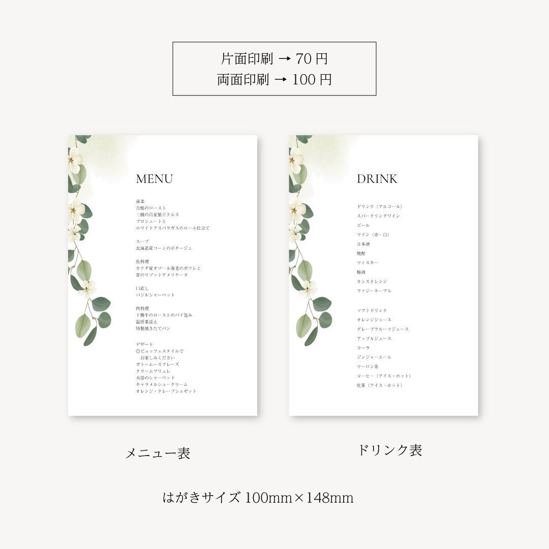 はがきサイズ メニュー表 印刷会社仕上げ ドリンクメニュー ナチュラル ウェディング 送料無料Wedding *momo-noha。