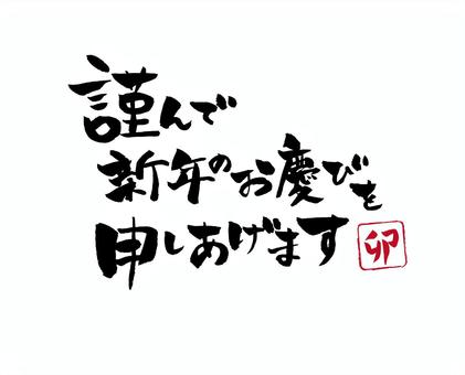 令和5年卯年 年賀状筆文字 謹賀新年 祝詞付き 文字のみ:イラスト無料。