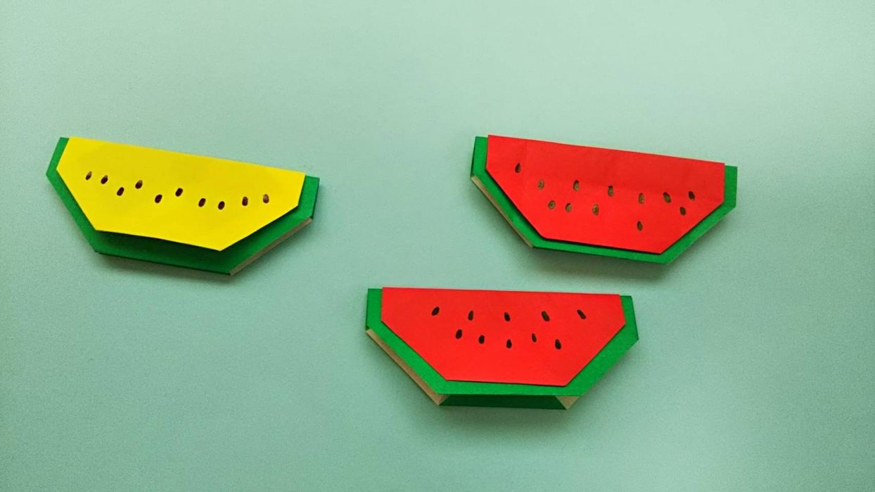 折り紙のスイカの折り方!七夕飾りにもおすすめ簡単夏の食べ物作品ちょちょいの工作部屋。
