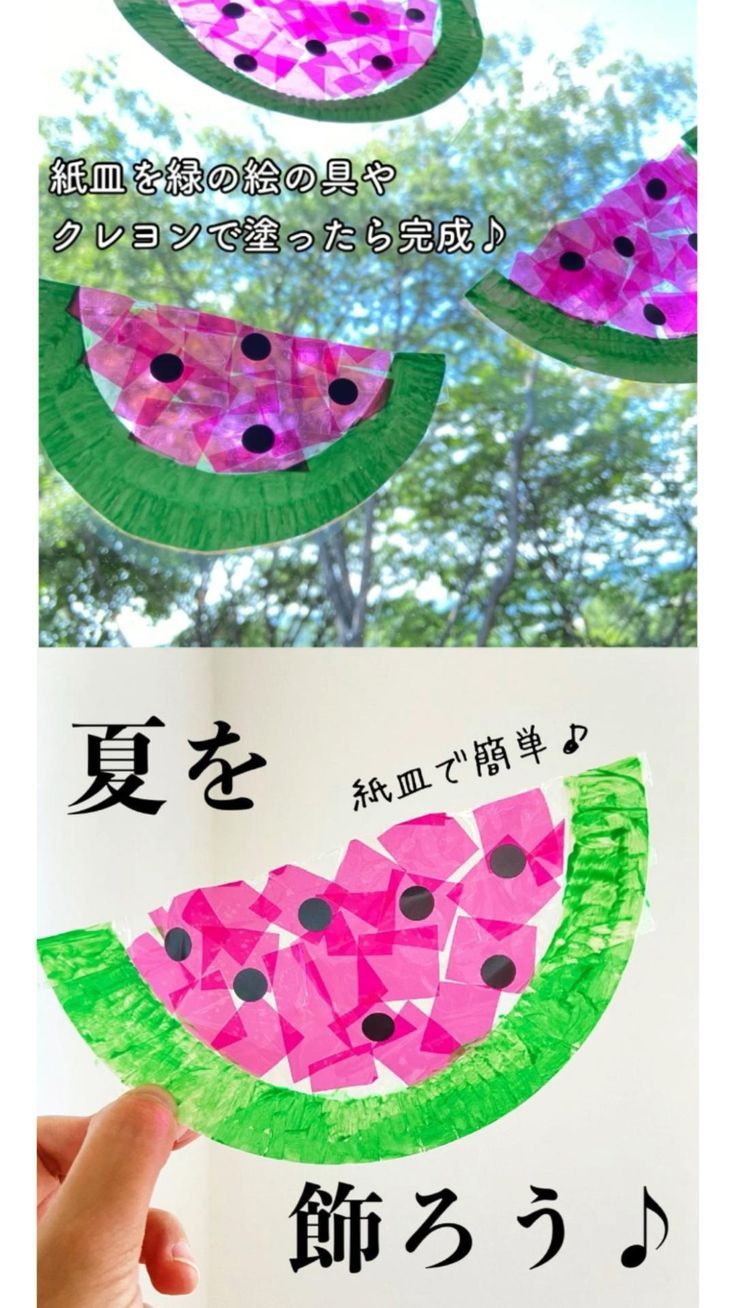 まあみ元保育士の製作アイデア@maami_seisakuidea 七夕飾りにぴったり🎋✨ まんまるすいかのちょうちん🍉 吊るして飾ると、くるくる回ってかわいいです🌀 貼るところは大人がすると、小さいクラスも作れます🙆🏻♀️ いいね♥︎フォローありがとう。