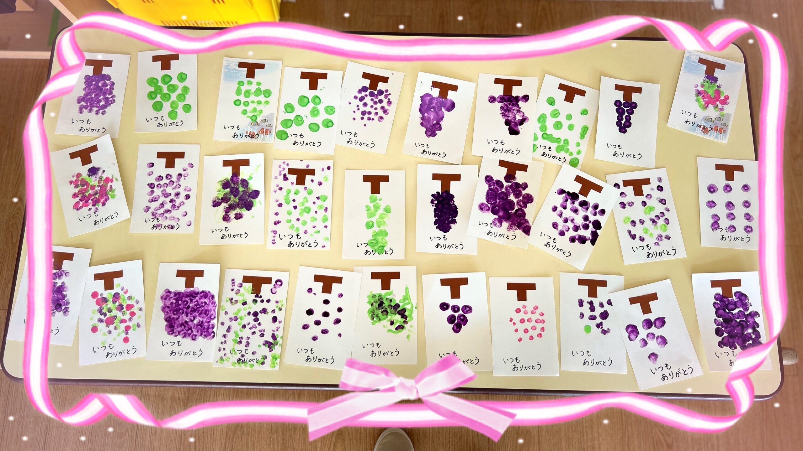 📮 敬老の日のハガキづくり📮 年少組では、敬老の日に向けてハガキを作りました💌 絵の具を使ってかわいいぶどうを描いたり、手形をぞうさんに変身させたりして、感謝の気持ちを込めました✨子どもたちの「だいすき!」がたっぷりつまった、愛情いっぱいのハガキになり。