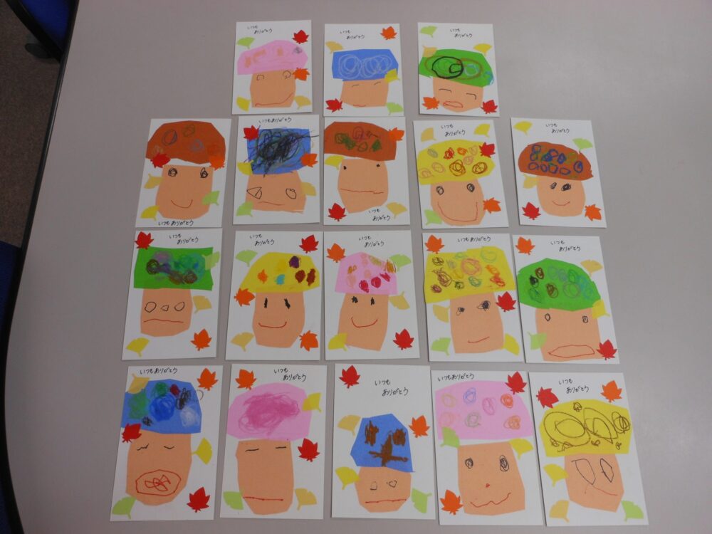 敬老の日のはがき製作にじいろ保育園ブログ。