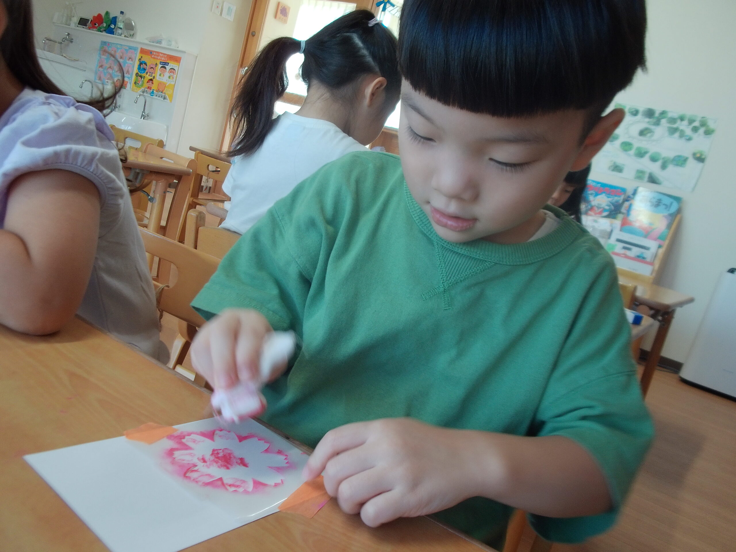 敬老の日に!2歳児制作〜絵の具スタンプ。