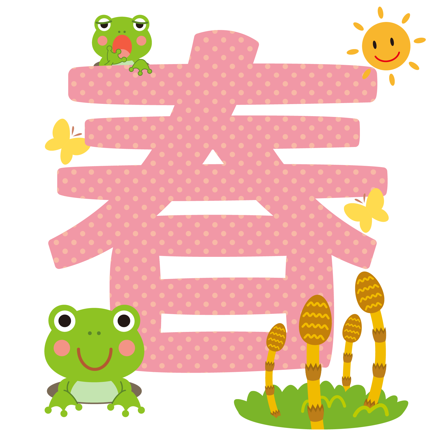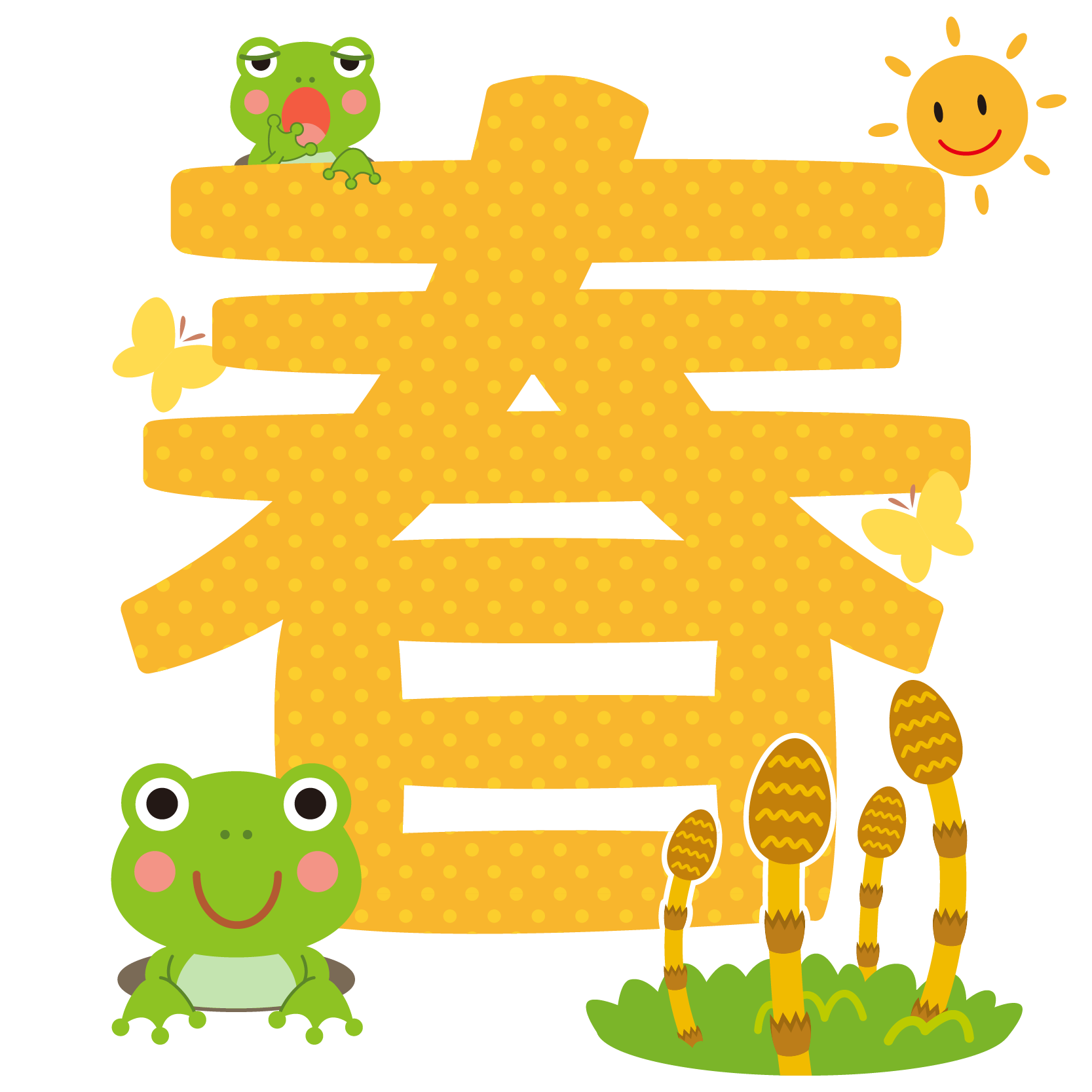 商用フリー・無料イラスト_春の文字 漢字 _ちょう_カエル_つくし_Spring_keichitsu029 -商用OK!フリー素材集「ナイスなイラスト」。