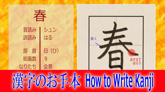 「春」漢字のお手本☆小2 ノートの文字が激変!!How to Write Kanji 筆順動画。