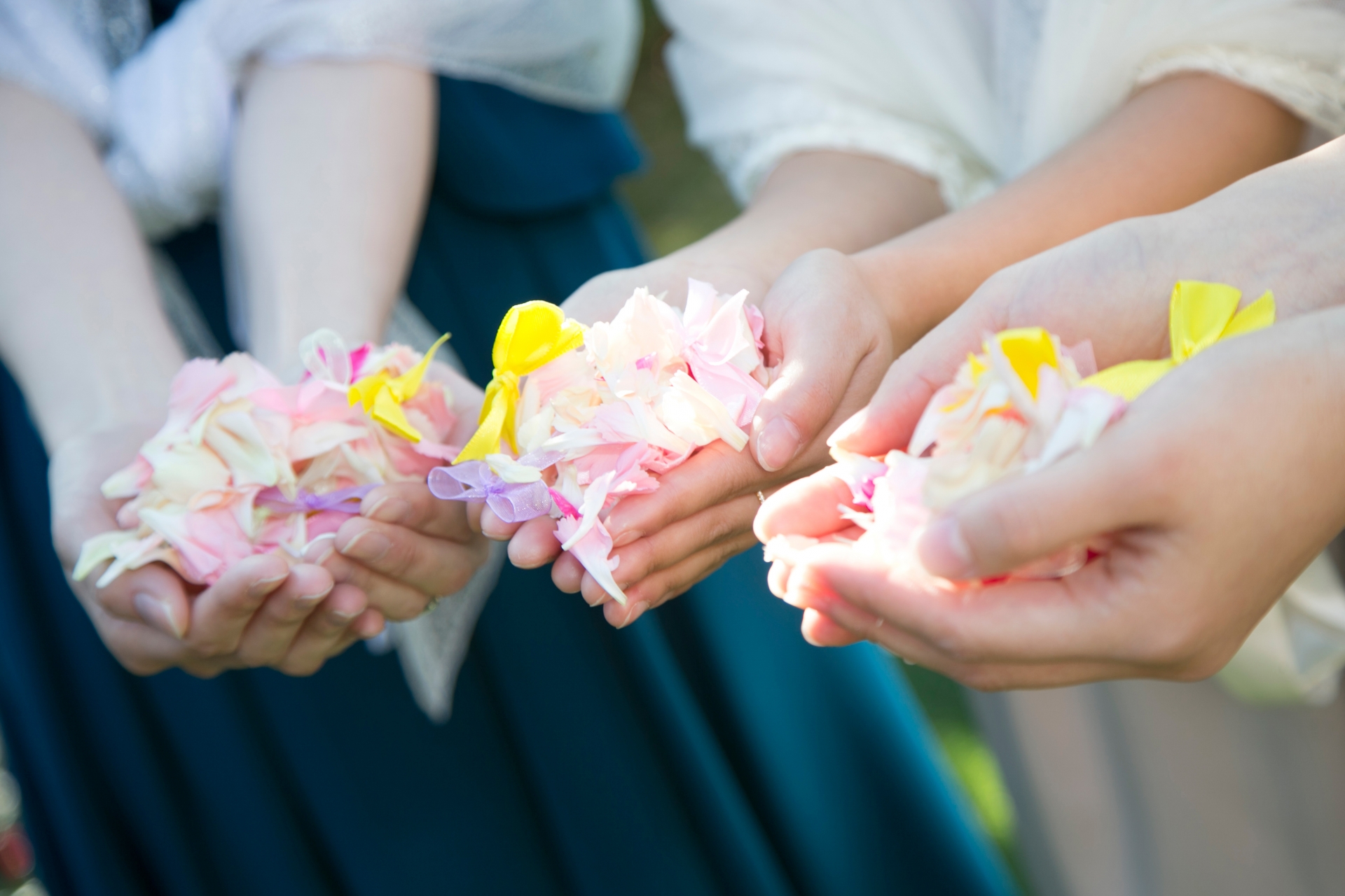 フラワーシャワーの由来や魅力 費用やおすすめの花、盛り上げるコツも解説デコルテフォトグラフィー前撮り・フォトウェディング。