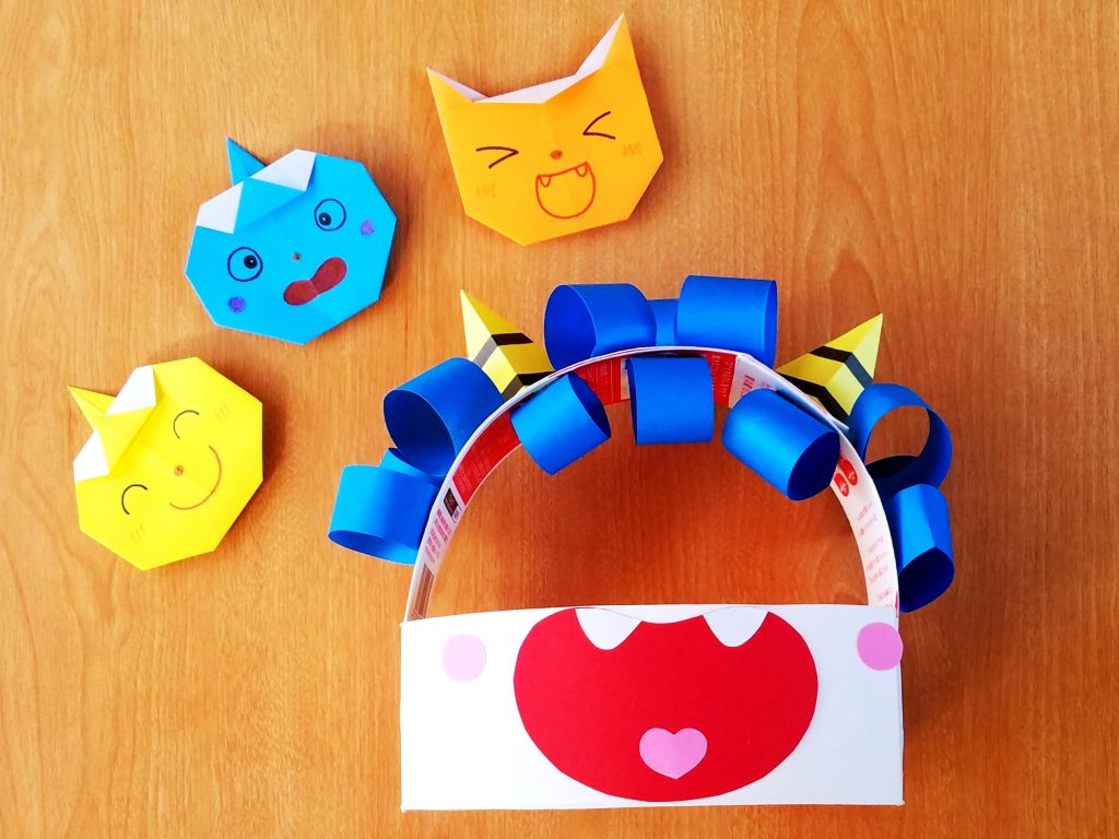 鬼のお面の作り方!色画用紙と折り紙で立体な髪に♪3歳児と親子制作息子デコ。