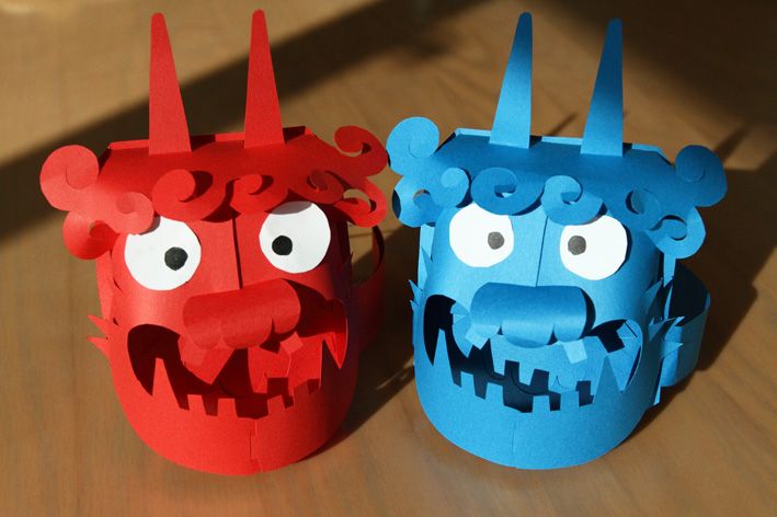 2月3日の節分に!工作で簡単!手作り鬼の帽子型お面の作り方 - みたろうさんち。