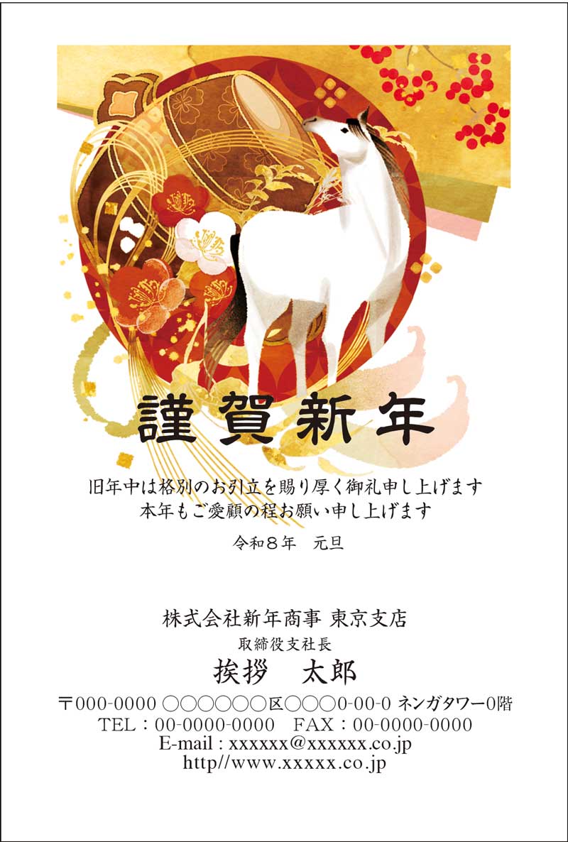 横向き」2026年 年賀状の無料テンプレート・デザイン・イラスト うま年・令和8年- ネット印刷グラフィック。